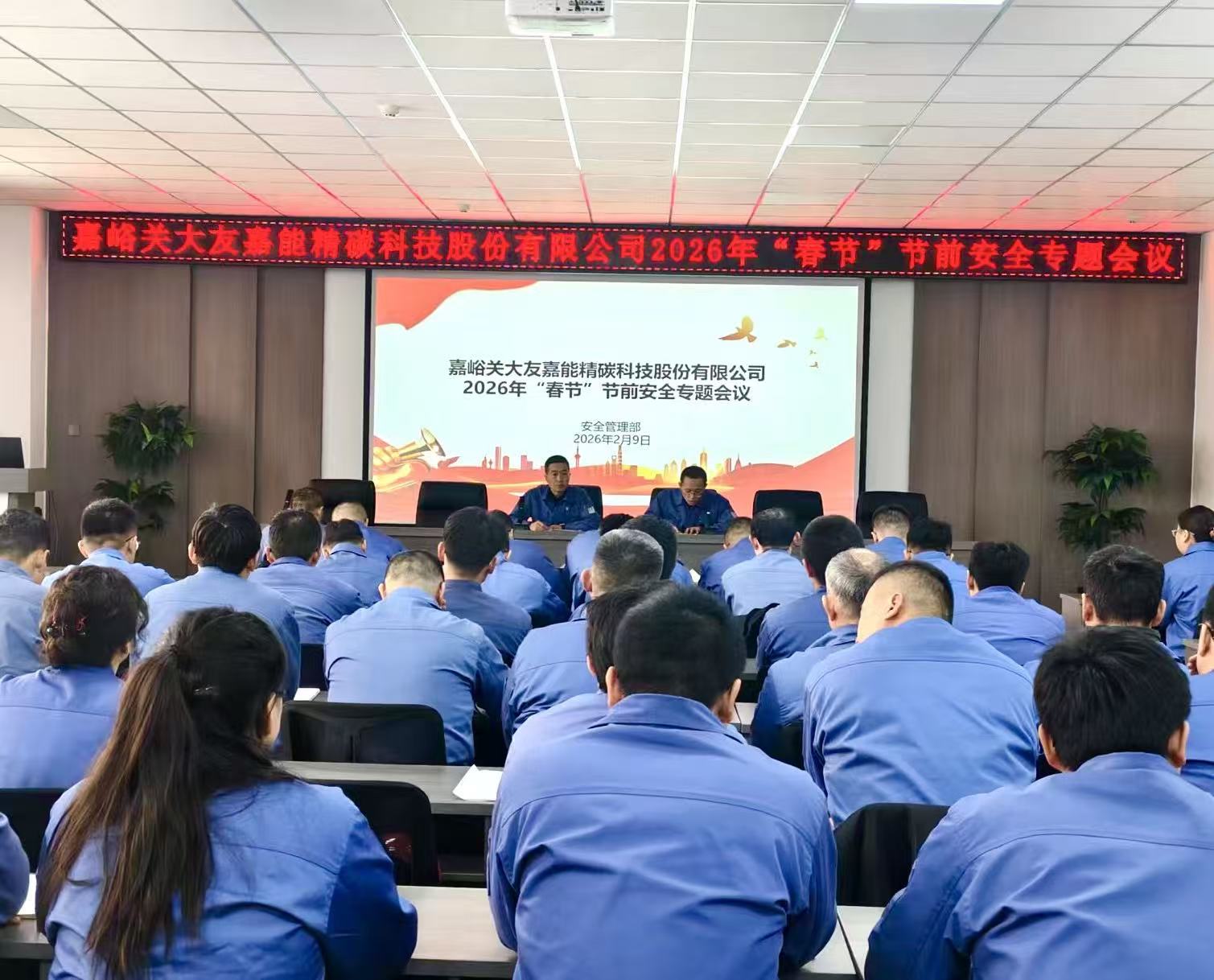 为深刻吸取各类安全事故教训,切实做好春节前后安全生产工作,有效防范和遏制安全事故发生,确保企业安全平稳运行、员工平安过节,2月9日上午,嘉能精碳公司召开了2026年春节前安全专题会议,公司部室、班组长及以上68名管理技术人员参加了本次会议。