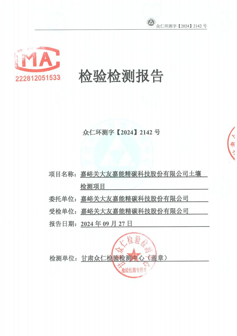 嘉峪关大友嘉能精碳科技股份有限公司 2024 年度土壤污染重点监管单位自行监测信息公开表